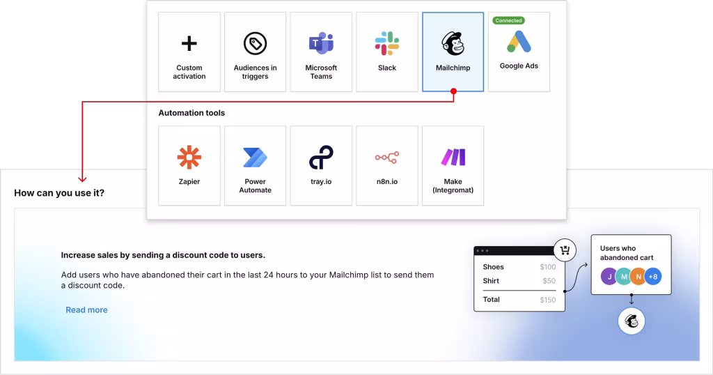 With CDP insights you can deliver personalized product suggestions to your users. By analyzing purchase history and recommending complementary products, you could boost average order value and customer satisfaction.