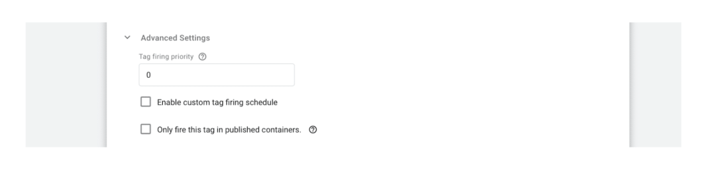 Note that “Advanced Settings” does not refer to “advanced mode”, since the entire set up via the GTM is the advanced setup.
