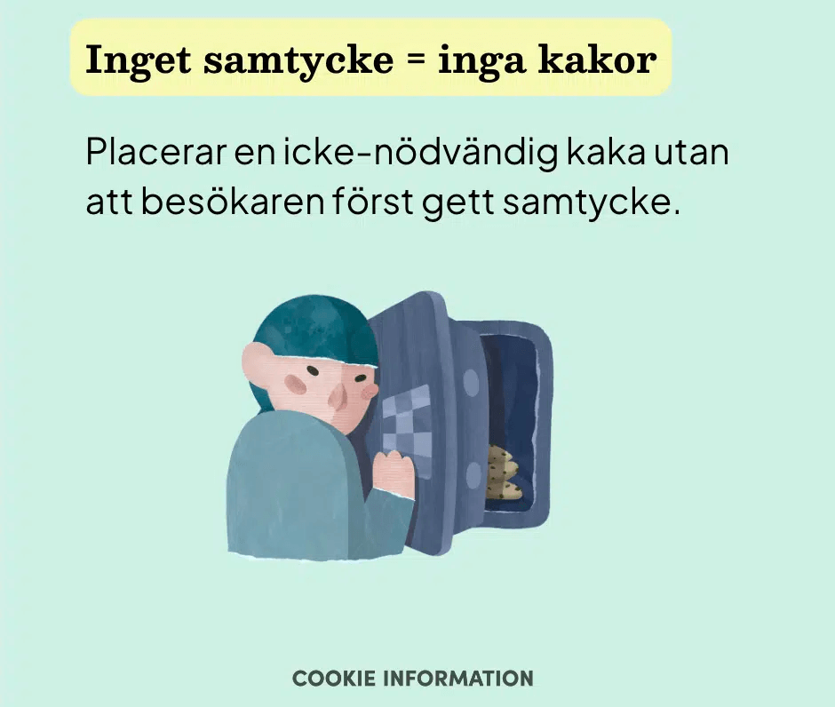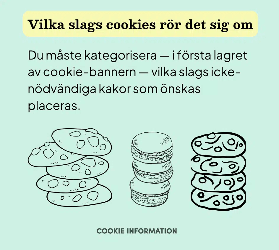 En webbplatsägare ska inte tvingas säga ja till “grisen i säcken”. Hen ska förstå vilka slags kategorier av kakor du vill placera eller använda.