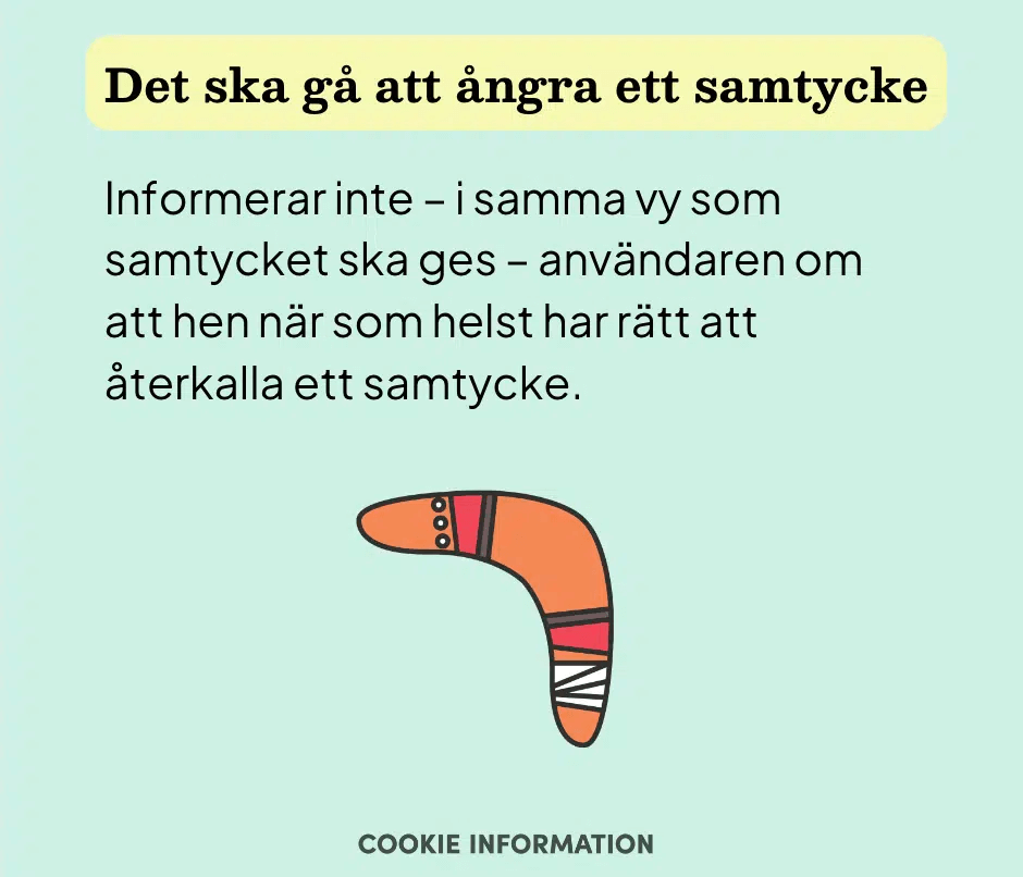 3. Det måste finnas information på bannern om, och hur, besökaren, när som helst, kan återkalla ett samtycke. Besökaren ska också kunna återkalla ett samtycke när som helst.